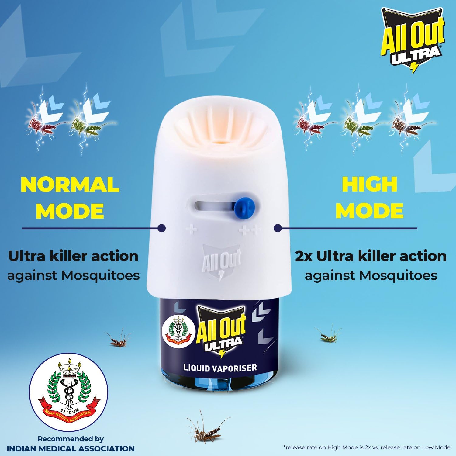 - Kills Disease Causing Mosquitoes: All Out Ultra Liquid Vaporizer effectively kills Dengue, Malaria, and Chikungunya spreading mosquitoes and keeps your family protected.