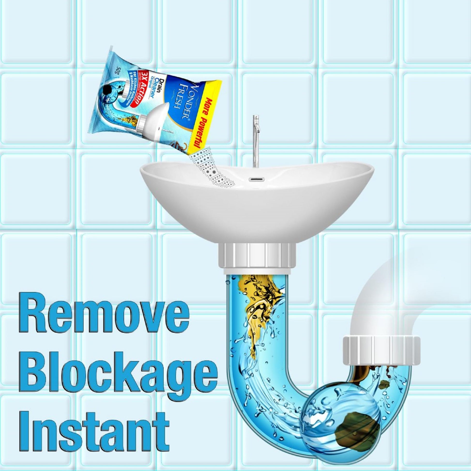 - [Wonder Fresh Drain Cleaner Powder] - The ultimate solution for keeping your pipes clear and your sinks spotless. This sink cleaner effortlessly removes blockages in pipes, tackling the toughest clogs with ease. Formulated to dissolve grease, hair, and grime, and ensures your drains flow freely and efficiently. Perfect for use in kitchens and bathrooms. It's safe, effective, and easy to use.