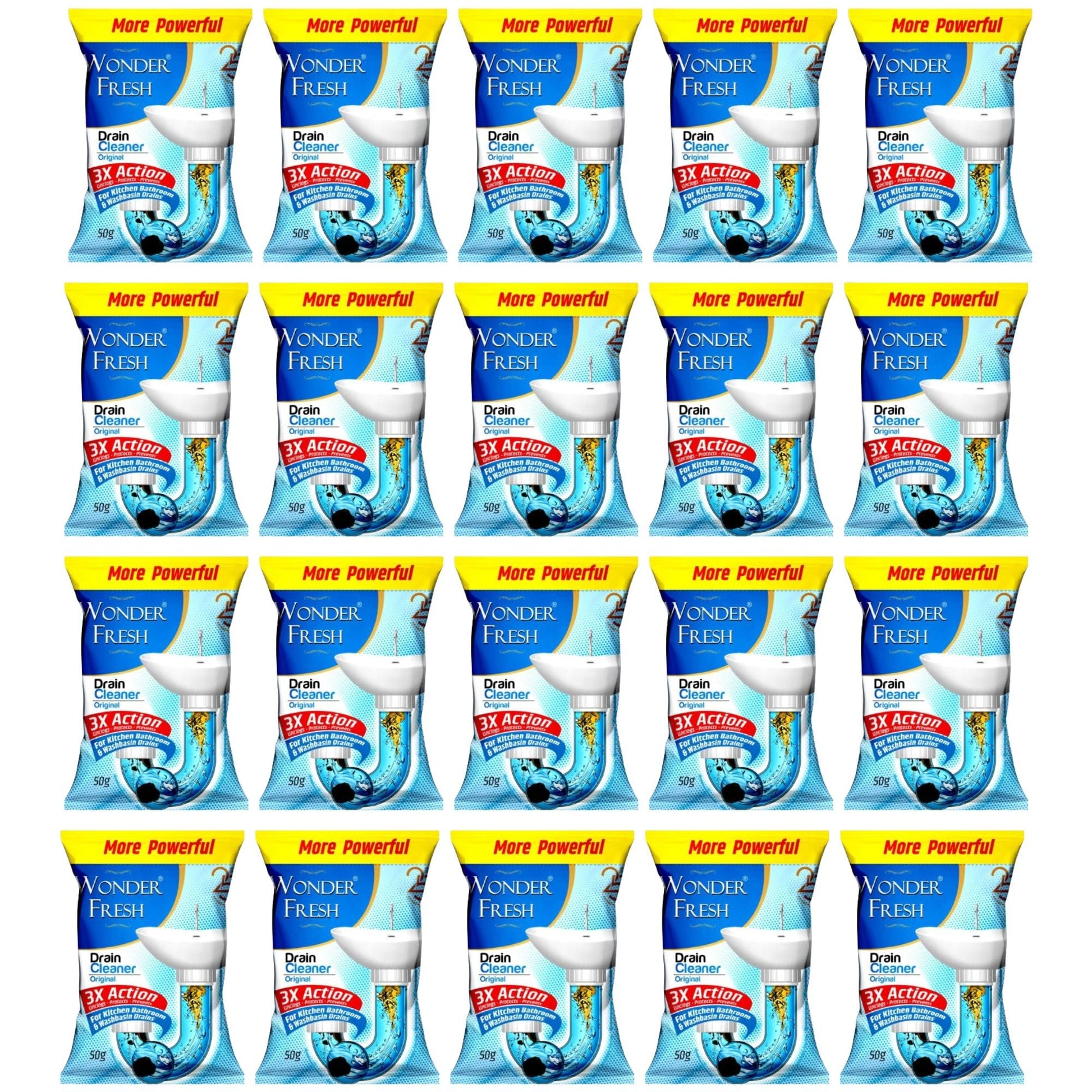 Wonder Fresh Drain Cleaner Powder | Effective Sink Cleaner | Drain Blockage Remover | Wash Basin & Toilet Cleaner | Removes Blockages in Pipes, Sinks & Septic Tanks | 50g (Pack of 20)